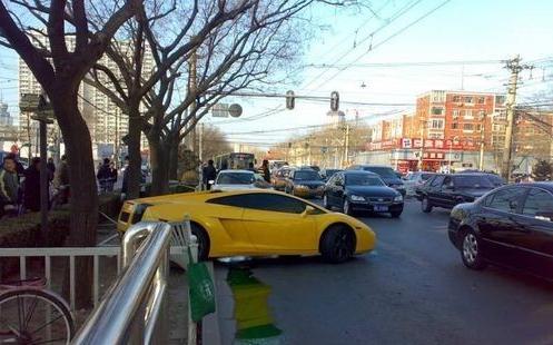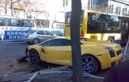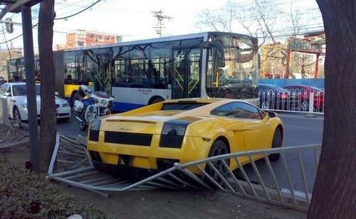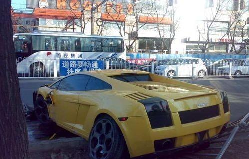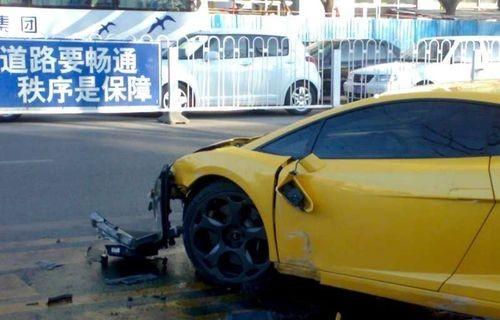 就看蘭博基尼后輪冒起滾滾白煙,車子開始打橫~,接著就哐地一下撞到護(hù)欄上,稀里嘩啦一陣響