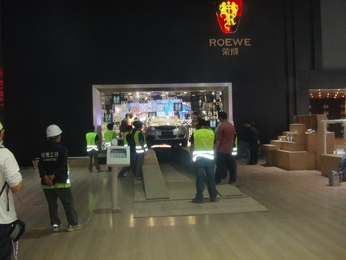 雖然車展還沒有開幕,但E4展館熱鬧非常,現(xiàn)場(chǎng)各大汽車展臺(tái)音樂四起,各大展臺(tái)的電子屏幕廣告目不暇接。該館從陣容上看,是上汽家族集團(tuán)和歐美豪華軍團(tuán)的聯(lián)合體。首先進(jìn)去,榮威炫目漂亮的展臺(tái)非常引人注目。