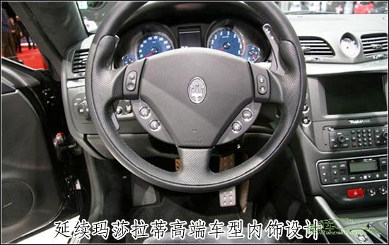 在車身外觀上,瑪莎GT S跑車采用了一系列抽象而有效的審美改造,同時(shí)延用了賓尼法利納巧奪天工的圓滑線條設(shè)計(jì),完美的延續(xù)了瑪莎拉蒂車系的一貫風(fēng)格。例如標(biāo)志性的前進(jìn)氣格柵設(shè)計(jì)。盡管這些修飾分散在車體各處,卻更加充分地體現(xiàn)出了該車的運(yùn)動(dòng)特性。