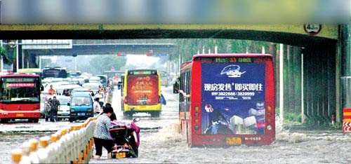 圖為昨日下午5時(shí)24分,南寧市新民立交橋底積水還未退去。