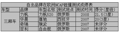 歐盟實施的EuroNCAP測試是目前全世界公認(rèn)最嚴(yán)格的評價體系,并最能全面體現(xiàn)汽車安全性的權(quán)威測試。其試驗結(jié)果已成為全世界消費者購車時的有力參照。一般由政府或具有權(quán)威性的組織機構(gòu),按照比國家法規(guī)更嚴(yán)格的方法對在市場上銷售的車型進(jìn)行碰撞安全性能測試、評分。力帆汽車首款轎車力帆520成為繼華晨尊馳后在歐洲進(jìn)行NCAP標(biāo)準(zhǔn)的碰撞測試中第二位“達(dá)標(biāo)”的中國汽車品牌,其21.5的總分再次刷新記錄,(華晨尊馳NCAP碰撞總分20分),成為迄今為止自主品牌在歐洲進(jìn)行NCAP碰撞測試中的最好成績。