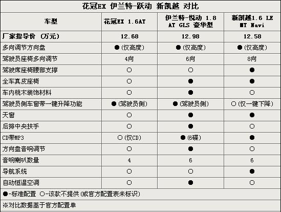 5月26日上海通用別克新凱越正式公布了市場售價,以1.6L車型為例,在外觀和內(nèi)飾上均有升級的新凱越定價上較老款車型下降了1-4千元,它的出現(xiàn)為上海通用繼續(xù)占領(lǐng)A級轎車市場打下了良好基礎(chǔ)。對于消費(fèi)者來說面對市場中那么多款同類車型,究竟哪一個才是最適合自己的呢?下面記者將為您例舉新凱越、伊蘭特-悅動和花冠EX三款同檔次車型,讓我們一起看一下價格相近的它們究竟哪個最適合您。