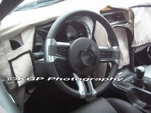 以下是在海外拍攝到的2010福特野馬的諜照圖片。從圖片上可以看出,2010福特野馬的內(nèi)飾采用了一些新的設(shè)計元素。新方向盤仍采用了目前車型上的三輻設(shè)計。其方向盤上還安裝了一系列的控制按鈕,左邊的為巡航控制按鈕,右邊的為操控同步播放界面的多媒體控制按鈕。