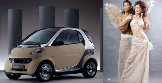 如果說能夠配得上一張大膽前衛(wèi)的結婚照,那向來獨立獨行、個性鮮明的Smart應該說是最佳車選。短短的懸垂、突出的輪弧、大尺寸輪胎以及極低的車輛高度,賦予整車非常明顯的充滿動感的姿態(tài)。修長的前引擎罩以及向后伸展的乘客艙,是設計師協調和平衡車身比例的得意之作,備有黑、銀兩種顏色的車身,卻可以與多種亮麗顏色車身鈑件搭配,從而創(chuàng)造出專屬于自己的Smart style。極具創(chuàng)意的畫面風格、個性另類的精靈Smart,照片里表現不僅是一張圖像,更深遠的是人物的生活觀念,個性內涵,對于80后那些年輕頑主的新人們應該是很受用。