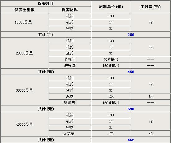 新伊蘭特悅動首次保養(yǎng)需要更換機油、機濾和空濾,首次保免費。在做完首次保養(yǎng)后,車主需要在10000公里的時候及時去4S店做保養(yǎng),此次保養(yǎng)項目與首保相同,但車主需要花費250元。悅動每5000公里都需要更換機油、機濾和空濾。新伊蘭特悅動在20000公里時需要在首保的基礎上,還需清洗節(jié)氣門和進氣道,此時車主需要花費450元。在30000公里時除了換首保的項目以外,氣濾也要更換,噴油嘴也需要清洗,共計花費598元。40000公里時伊蘭特悅動在首;A上,還要更換價值212元火花塞。