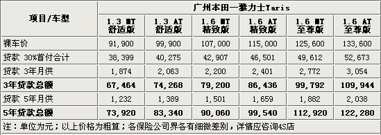 對(duì)于希望貸款購車的朋友來說,目前豐田雅力士的貸款購車也可以正常進(jìn)行。豐田汽車擁有自己的直屬金融機(jī)構(gòu),可以幫助消費(fèi)者更快捷的辦理貸款業(yè)務(wù)。以裸車價(jià)(已含購置稅)9.19萬的舒適版雅力士為例,您最高可以享受到70%、3年的按揭(公務(wù)員、教師可達(dá)5年),這樣的話購買該車的首付金額總計(jì)大致在3.8萬元上下,3年月還1874元、5年月還1232元。對(duì)于一般收入在6-8千元上下的家庭來說還是比較容易承擔(dān)的。3年一共要還款6.7萬元左右,5年貸款則要還款7.4萬元左右。