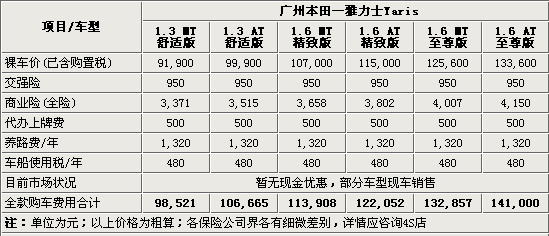 2008年6月26日,廣州豐田的首款經(jīng)濟(jì)型轎車正式上市,首批上市的共有1.3L、1.6L兩種排量9款車型,廠家指導(dǎo)價(jià)從9.19萬元至13.36萬元不等。與其它汽車廠商不同的是,雅力士公布的廠商指導(dǎo)價(jià)包含了其自身的車輛購置稅。那么對(duì)于想要購買該車的朋友來說,將這部豐田雅力士開到家以后的總計(jì)花費(fèi)要達(dá)到多少元呢?提車時(shí)又該注意些什么呢?下面我們就來一起了解一下吧!