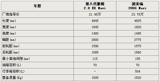 新雅閣2.0L導(dǎo)航版的售價(jià)為21,98萬元,比凱美瑞200G導(dǎo)航版的價(jià)格低1.8萬,所以在售價(jià)方面新雅閣2.0L導(dǎo)航版還是相當(dāng)具有優(yōu)勢(shì)的。車身尺寸方面第八代雅閣在車長、車寬尺寸方面都完全超過了凱美瑞,這些條件使得第八代雅閣的內(nèi)部空間足夠?qū)挸,加?800mm的軸距,前后排乘員置身其中都能體會(huì)到最舒適的乘坐感受。第八代雅閣150mm的離地間隙,相對(duì)凱美瑞和天籟車型明顯有些不足,因此在道路的通過性能上將會(huì)略低于凱美瑞。兩款車型均配備了70升大小的油箱,足以滿足人們?nèi)粘9ぷ骱投掏韭糜蔚男枨蟆?/P>