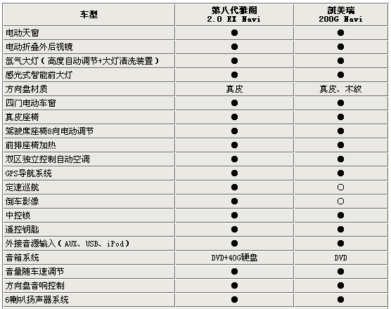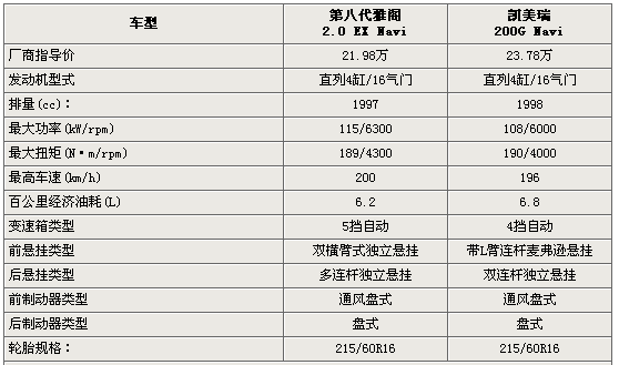 廣州本田第八代雅閣2.0 EX Navi將于7月13日正式上市,廠商指導(dǎo)價(jià)為21.98萬。這款即將上市的車型不僅豐富了第八代雅閣轎車的產(chǎn)品系列,而且也使得中高級(jí)汽車市場(chǎng)的競(jìng)爭日趨激烈。隨著這款車上市日期的臨近,很多消費(fèi)者也對(duì)其表現(xiàn)出濃厚的興趣,下面我們將對(duì)雅閣2.0 EX Navi版和目前市場(chǎng)上熱銷的凱美瑞200G Navi版進(jìn)行各項(xiàng)參數(shù)的詳細(xì)對(duì)比。