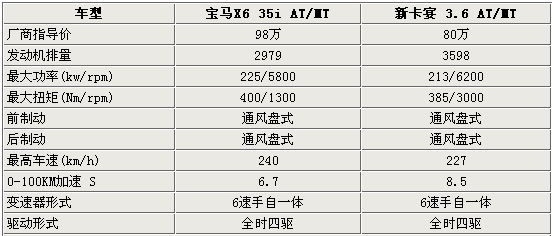 從動(dòng)力方面來(lái)看,動(dòng)力表現(xiàn)當(dāng)然是X6車(chē)型優(yōu)秀,X6采用了帶有雙渦輪增壓的3.0升直噴發(fā)動(dòng)機(jī)。其動(dòng)力表現(xiàn)自然是不言而喻,從最大功率以及最大扭矩來(lái)看,X6的表現(xiàn)均要優(yōu)于3.6排量的卡宴車(chē)型。這一系列的優(yōu)勢(shì),在車(chē)型的最高時(shí)速以及0-100KM加速上,都有極好的體現(xiàn)。相較于卡宴來(lái)說(shuō),X6擁有更大的外形及整備質(zhì)量。但其搭載的雙渦輪增壓直噴發(fā)動(dòng)機(jī)為它提供了這一切條件。從驅(qū)動(dòng)形式來(lái)看,兩款均為全時(shí)四驅(qū)車(chē)型。這使它們都能更好的適應(yīng)多變的道路。