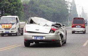 小主人回憶當(dāng)時(shí)的情景,在電話里笑著說(shuō):“我沒(méi)想到它還能動(dòng),轟油,剎車(chē)都沒(méi)問(wèn)題!毙≈魅松宪(chē)沒(méi)系安全帶,它還一直在報(bào)警提示著主人呢。小主人有8年駕齡,靠著經(jīng)驗(yàn),它慢慢起步了,由于右后輪完全變形,小跑起來(lái)有點(diǎn)跛,但跑起來(lái)后還比較穩(wěn)定。小主人將音響打開(kāi),它還能唱歌。就這樣,15公里的路程,從漢旺到綿竹修理廠,頑強(qiáng)的它引來(lái)無(wú)數(shù)人的眼光。它哼著歌,以30-40公里的時(shí)速,搖搖晃晃地到達(dá)了目的地。