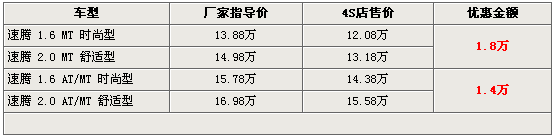 據(jù)4S店銷售人員介紹,由于搭載1.8TSI引擎的速騰車型即將上市,所以速騰1.8T車型早在今年3月份就已停產(chǎn)。目前速騰僅有1.6L以及2.0L兩種排量車型可供選擇,并且現(xiàn)在購買速騰手動擋車型均有1.7萬元的優(yōu)惠,同時還可贈送3000元的保養(yǎng)工時費。當筆者問及贈送的工時費是否可以折現(xiàn)時,該銷售人員表示盡可以折現(xiàn)1000元現(xiàn)金,由此可以看出目前速騰車型的最高優(yōu)惠幅度高達1.8萬元。