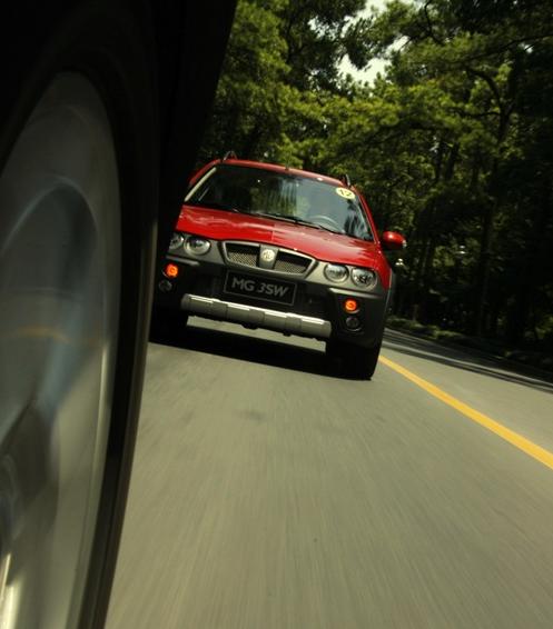 在開始的路段一直在使用D檔模式,CVT變速箱換擋平順,沒有絲毫的頓挫感。熟悉了一段后將排檔桿撥入Sport運動模式,在這個模式下全力踩下油門,發(fā)動機(jī)的轉(zhuǎn)速會穩(wěn)定在5500轉(zhuǎn)/分左右,廠家介紹MG 3SW的1.8升發(fā)動機(jī),在城市道路日常使用,在2000—3000轉(zhuǎn)/分區(qū)間內(nèi)便能有一次扭矩峰值的出現(xiàn),但在此次山路駕駛中,還是覺得發(fā)動機(jī)在4000轉(zhuǎn)左右再次出現(xiàn)的扭矩峰值時可獲得更強(qiáng)勁的動力,爬坡能力更強(qiáng)。MG 3SW在上坡的山路上的表現(xiàn)不錯,由于使用了205的寬胎,再加上偏硬的懸架調(diào)校, MG3在彎道的抓地力和車身側(cè)傾控制都相當(dāng)出色,急彎出沒有明顯側(cè)傾的感覺。由于采用了四輪碟剎,在山中的盤山下坡路段,剎車靈敏、反應(yīng)及時。