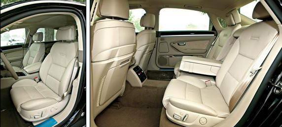 A8L的前排座椅空間并沒有太大優(yōu)勢,但是強大的調(diào)節(jié)功能使其矬程度絕對不是A6L可以比擬的。 A8L后排座椅的腿部空間不但達到了夸張的程度,還具備像前排座椅一樣的電動調(diào)節(jié)和按摩功能