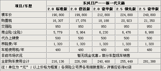 東風(fēng)日產(chǎn)專為中國消費者打造的旗艦車型新一代天籟,已于6月16日正式上市銷售,售價在19.08-24.98萬。新天籟是在全新的D平臺基礎(chǔ)上開發(fā)的全新車型,該車型在北京車展上一經(jīng)亮相,就立刻受到了國內(nèi)消費者的關(guān)注。那么對于想要購買該車的朋友來說,將這部新一代天籟車型開到家以后的總計花費要達(dá)到多少元呢?提車時又該注意些什么呢?下面我們就來一起了解一下吧!