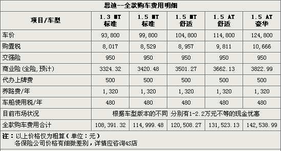 隨著廣州本田全新思迪(參數(shù)配置 圖庫)上市日期的日益臨近,現(xiàn)行在售的老款思迪的售價也相應(yīng)的出現(xiàn)了浮動。這樣一來,指導(dǎo)價格為9.38萬元至12.482萬元的現(xiàn)款思迪在出現(xiàn)過萬的現(xiàn)金優(yōu)惠后,其性價比的提升進(jìn)而吸引了眾多準(zhǔn)備購買經(jīng)濟(jì)型家庭用車的消費(fèi)者們。那么,對于想要購買思迪的朋友來說,將這部本田思迪開到家以后的總計(jì)花費(fèi)要達(dá)到多少元呢?提車時又該注意些什么呢?下面我們就來一起了解一下吧!