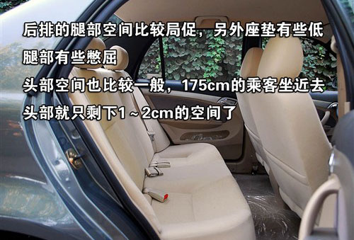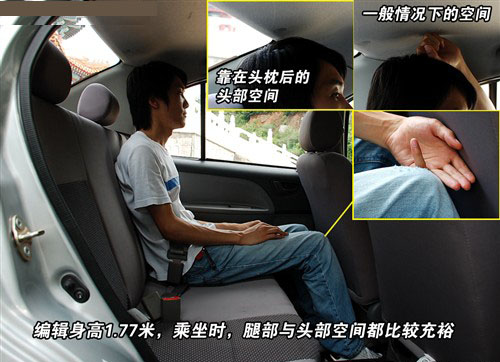 后排座椅空間就很難讓人滿意了:身高一米七五以上的人必須有腿頂前排座的覺悟,而且為了保證頭不接觸車頂,必須保持一個蜷縮的姿態(tài);而且座椅的靠背角度過于平直,長時間乘坐會很快疲勞。