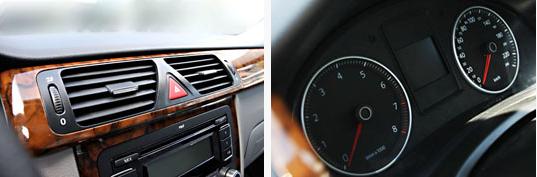 鉆進(jìn)新寶來(lái)(參數(shù)配置 圖庫(kù))的內(nèi)部第一眼的感覺(jué)就是它和邁騰非常相似,方向盤、中控面板、按鈕的造型等等。但細(xì)細(xì)看下來(lái)你會(huì)發(fā)現(xiàn),新寶來(lái)的做工和配置要比原先退步了。首先,在邁騰身上飽受詬病的仿桃木裝飾赫然出現(xiàn)在新寶來(lái)身上,其次一些細(xì)節(jié)處理不到位,遮陽(yáng)板沒(méi)有照明燈、燈光控制取消了亮度調(diào)節(jié)、車門原有的3段是鉸鏈變成了單薄的拉桿,或許和試裝車有關(guān),但愿實(shí)際交付的車輛不會(huì)這樣。