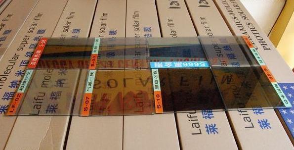 通過(guò)肉眼看,透光率為78%的S02比較清晰,基本上沒(méi)有反光的現(xiàn)象。透光率為45%S03的顏色比S02的顏色明顯黑了很多,而且文字也沒(méi)有那么清晰了,開(kāi)始出現(xiàn)一點(diǎn)反光現(xiàn)象。透光率為20%的S10顏色更加深,是很明顯黑色的一塊膜,玻璃底下的文字基本上看不見(jiàn)了,有比較明顯的反光現(xiàn)象。最后測(cè)試的是透光率為22%的S666,雖然這款膜的透光率比S10的20%多,但是看上去顏色好黑,玻璃底下文字完全看不見(jiàn),而且反光現(xiàn)象特別明顯,就像一塊鏡子一樣。