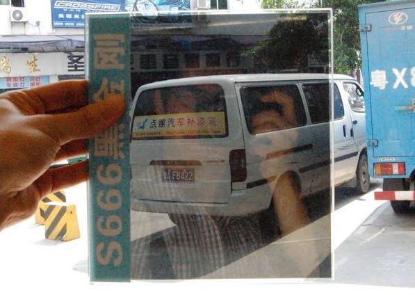 透光率為22%的S666在室內(nèi)看上去反光效果特明顯,如果做成汽車防爆膜的時(shí)候看上去會(huì)怎么樣呢?在正午的猛烈陽(yáng)光底下,透過(guò)S666我們還是可以清晰看見(jiàn)外面的景物,但是如果室外光線不好的時(shí)候,乘客大概也就看不到車外美景了。