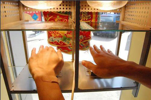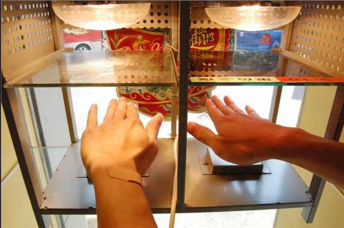 接下來(lái)我們就利用防爆膜測(cè)試機(jī)來(lái)對(duì)透光率作更為切身的體會(huì)。我們買(mǎi)防爆膜的其中一個(gè)目的就是防曬,在測(cè)試過(guò)程中,用兩支高瓦數(shù)的大燈,看看用上防爆膜是否有立竿見(jiàn)影的效果。放上測(cè)試的防爆膜左邊是透光率比較高的S02右邊是透光率比較低的S10然后打開(kāi)大燈。從圖片可以明顯地看出,透光率低的“防曬”效果就是比高的好很多,有“撐了一把傘”的效果,而反光效果明顯的S666“防曬”效果也比S10要好一點(diǎn)。