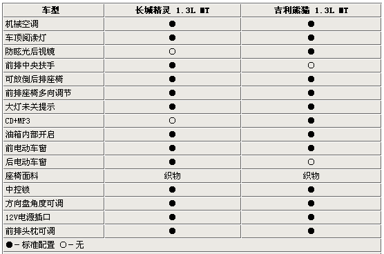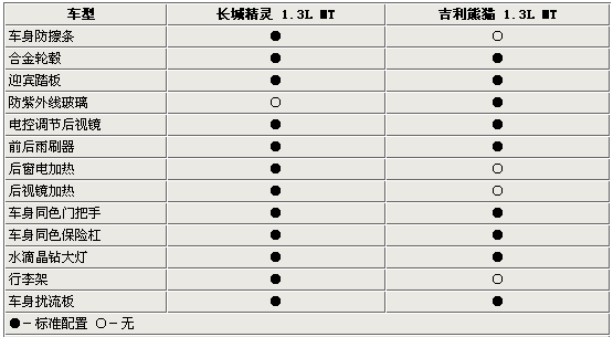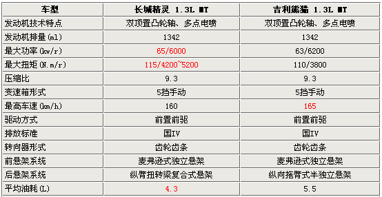而在動(dòng)力方面兩款車型則有所不同,除最高車速方面熊貓車型表現(xiàn)較佳外,長(zhǎng)城精靈(參數(shù)配置 圖庫(kù))憑借更加優(yōu)秀的動(dòng)力輸出而勝出,但值得一提的是兩車的整備質(zhì)量相差較大,較重的精靈在油耗方面突出的表現(xiàn)成為優(yōu)勢(shì)。