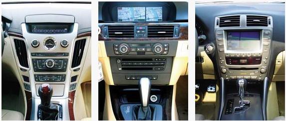 三款車型都是各自品牌下強(qiáng)調(diào)運(yùn)動(dòng)與豪華特質(zhì)的車型,第二代CTS保留了老款車型“鉆石切割”車身所特有的刀削般的線條,低矮的車身配合較高的腰線和車窗,一眼看去就要比一般的車型更加“敦實(shí)”;寶馬325i外觀延續(xù)了3系第五代車型的設(shè)計(jì);雷克薩斯IS300車身線條流暢,楔形車身前沖感覺(jué)強(qiáng)烈,較小的離地間隙配合大尺寸輪胎,給人“天生”一副跑車相的感覺(jué)。