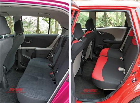 相比新飛度,雅力士在這方面稍欠火候,不僅內飾做工稍遜,分別位于中控臺頂部、底部的儀表盤和空調旋鈕還考驗著駕駛者的注意力。其實前輩威姿上的數字式儀表不錯,可讀性好,用些許余光便可對當前車速一目了然。還好,后座的舒適性為它挽回了一點面子。雖和新飛度一樣為4/6分折疊,不過雅力士的左右側座椅可單獨調節(jié)前后位置和靠背角度,并且厚實的座墊慰勞著臀部,但是問題也十分突出——較短的座墊和新飛度一樣無法滿足15分鐘以上的坐乘舒適性。
