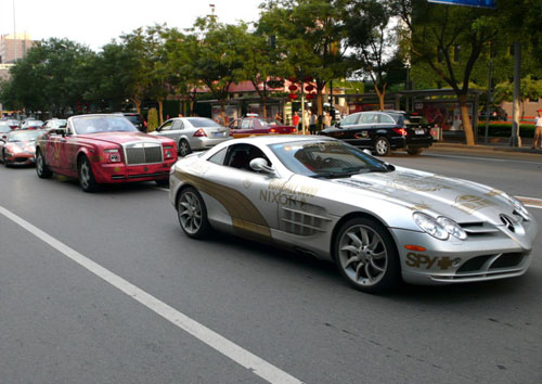 有些車型雖然在我們身邊偶爾也會(huì)見到,比如奧迪R8、法拉利360 Spyder、勞斯萊斯幻影敞篷車和蘭博基尼Gallardo等,但絢麗的個(gè)性化裝飾還是給人以強(qiáng)烈的視覺沖擊。更何況同時(shí)同地有那么多豪車、超跑出現(xiàn),這個(gè)機(jī)會(huì)是千載難逢的。