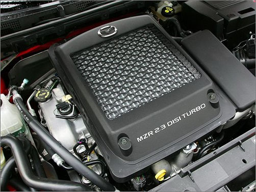 身著火紅色運動裝的馬自達3 MPS看起來也很自信,加大的中網(wǎng)和粗壯的排氣管都是它明顯的特征。馬自達也使用18英寸輪胎,寬度也達到215。奧迪的輪胎就遜多了,17寸205的規(guī)格讓它在瀝青路面上不那么自信,不過我們的測試車使用的是冬季胎,夏季胎同樣也是18英寸。