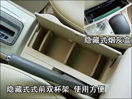煙灰缸為隱藏式,使用方便。前杯架同為隱藏式,如不放置杯子以及瓶子,可暫時放置一些小件物品。