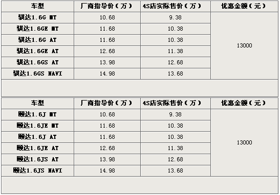 據(jù)4S店的銷售人員介紹,消費(fèi)者現(xiàn)在購(gòu)買騏達(dá)或者頤達(dá)都可以有一定優(yōu)惠,因?yàn)檐囆蛢H有兩廂和三廂的區(qū)別,在價(jià)格上優(yōu)惠的幅度是一樣的,均為1.2萬元。車型款色主要以銀色、紅色和黑色為主,店內(nèi)也有現(xiàn)車可供消費(fèi)者選擇。降價(jià)車型中,騏達(dá)1.6G手動(dòng)版優(yōu)惠1.3萬后售價(jià)僅為9.38萬,已不足十萬。