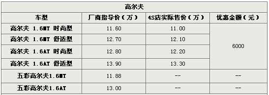 據(jù)4S店銷售人員介紹,消費者現(xiàn)在購買高爾夫可有6000元的現(xiàn)金優(yōu)惠。各家4S店的現(xiàn)車供應比較充足。一汽大眾在奧運期間推出了和奧運相關的高爾夫五彩版車型,銷售人員介紹說,五彩版高爾夫有1.6手動和自動兩款車型可供選擇,由于是限量版車型,廠家實行訂單制生產(chǎn),所以現(xiàn)車非常少。消費者如要購車需先預定,一個月后才能提到現(xiàn)車。目前五彩高爾夫在價格方面也沒有優(yōu)惠。