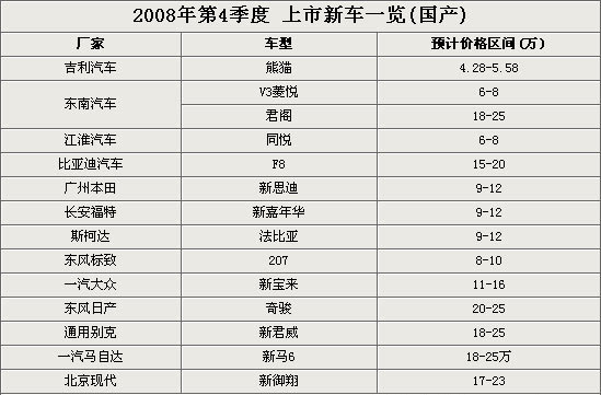 10.1黃金周已經(jīng)結(jié)束,也許很多朋友都利用這個長假期認真的逛了逛車市,為自己的家庭添置一臺汽車而做好了充分的準備。雖說10.1黃金周期間各個品牌的汽車都推出了不錯的促銷方案,但是汽車畢竟是一個時尚的消費品,最新上市的車型總能吸引周圍人的注目。如果您也期望自己的愛車是一臺時尚的新車,那么不妨來看一看在10月份以后到08年底這段時間里將要上市的全新車型吧。