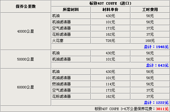 與聞名于世的標(biāo)致206CC、307CC系出同門的407Coupe轎跑車是法國(guó)標(biāo)致公司的靈魂體現(xiàn)。搶眼的設(shè)計(jì)、卓越的穩(wěn)定性、超凡的安全性成為標(biāo)致407Coupe轎跑車的完美詮釋,被當(dāng)之無(wú)愧的定義為純粹的駕駛極品,尤其吸引著眾多高端人士的目光。那么在日后的保養(yǎng)維護(hù)上該車的價(jià)格是否也在您的承受能力之內(nèi)呢?下面我們就來(lái)一起看一下標(biāo)致407Coupe在行駛6萬(wàn)公里過(guò)程中所需要的保養(yǎng)金額會(huì)是多少。