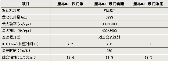 日前據(jù)寶馬相關(guān)人士透露,繼寶馬M5與M6高性能跑車相繼引入國內(nèi)后,另一款寶馬M3性能版車型也將于本月17正式上市。搭載4.0V8引擎的寶馬M3共有三款車型,分別為四門版、雙門轎跑版以及雙門敞篷版車型。通過以下寶馬M3參數(shù)、配置的曝光,讓我們提前一睹這款高性能跑車到底有著怎樣的表現(xiàn)。