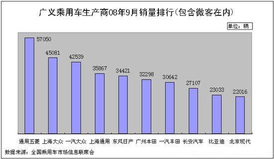 在2008年8月被上海大眾以4958臺(tái)的銷(xiāo)售優(yōu)勢(shì)反超,退居二線的上海通用五菱在結(jié)束了停產(chǎn)假期后在9月以57050臺(tái)的驕人成績(jī)重登廣義乘用車(chē)生產(chǎn)商銷(xiāo)量排行第一的位置。同時(shí),在上月名列銷(xiāo)量排行第九的自主汽車(chē)品牌長(zhǎng)安汽車(chē),在2008年9月以27107臺(tái)的銷(xiāo)量升至廣義乘用車(chē)生產(chǎn)商銷(xiāo)量排行的第八。