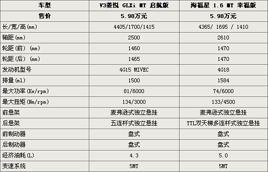 從兩款車的車身尺寸和性能方面來(lái)看,東南V3菱悅的車身尺寸比海福星(參數(shù)配置 圖庫(kù))要大一圈,但是軸距卻只有2.5米,使內(nèi)部空間大小不及海福星。另外,菱悅和海福星都搭載的三菱東安發(fā)動(dòng)機(jī),其中菱悅所配備的4G15發(fā)動(dòng)機(jī)的最大功率可達(dá)81kw,在3000轉(zhuǎn)的時(shí)候可以爆發(fā)出134N的最大扭矩,動(dòng)力比海福星更加充沛。另外,菱悅所采用的五連桿式獨(dú)立后懸掛,使整車的穩(wěn)定性更高。