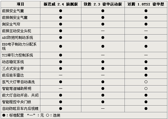 新君威、致勝以及邁騰作為個性中級車,其在安全性能方面可謂是下足了功夫,前排安全氣囊、側安全氣囊、電子穩(wěn)定程序以及隨速轉向等均成為三款車的標準配置。而新君威配備的主動式頭枕,均較致勝和邁騰提高了主動安全性能。此外,邁騰配備的前后駐車雷達,較新君威和致勝的倒車雷達更加人性化。