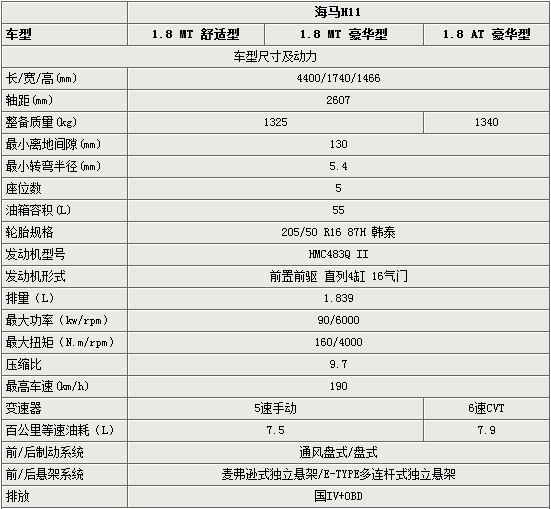 作為海馬汽車今年最重要的新車-海馬3兩廂車型(代號H11),即將于年底前正式上市。據(jù)海馬汽車相關(guān)人員介紹,即將上市的1.8L海馬3兩廂車型,將有手動舒適型、豪華型和自動豪華型三款新車,預計起售價在將10萬元左右。