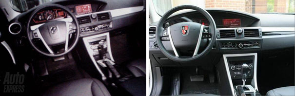 上圖為MG6與中版550內(nèi)飾的對比,可以看出兩者布局大同小異,差別只要在于內(nèi)飾物料的選擇以及顏色搭配上。