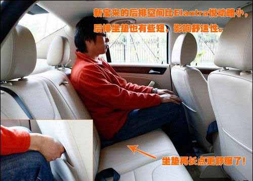新寶來(lái)加長(zhǎng)軸距后,帶來(lái)后排乘坐空間的巨大改變,腿部空間有了明顯的提升,但由于新寶來(lái)后排座墊長(zhǎng)度限制,降低了大空間帶來(lái)的舒適性。