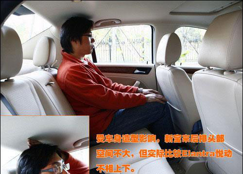 總體上看,新寶來(lái)和悅動(dòng)的內(nèi)部空間都比較寬裕,但悅動(dòng)憑借車身尺寸的優(yōu)勢(shì),使得內(nèi)部空間表現(xiàn)也略占上峰,頭部空間和腿部空間也都比新寶來(lái)略占優(yōu)勢(shì)。但新寶來(lái)后排空間同樣令人滿意,腿部和頭部都能給乘客帶來(lái)較為舒適的乘坐空間。
