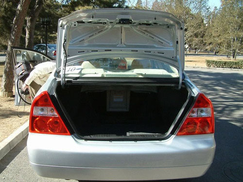 車(chē)身側(cè)面線條簡(jiǎn)潔利落,帶轉(zhuǎn)向燈的外后視鏡,鍍鉻門(mén)把手與鍍鉻防擦條都頗顯此車(chē)的檔次感;只是車(chē)尾部結(jié)束得過(guò)于直接,給人一種突兀的感覺(jué),破壞了整車(chē)的穩(wěn)重的氣勢(shì)。