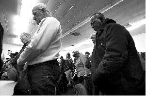 11月20日,美汽車企業(yè)退休員工在月度聚會(huì)上祈禱經(jīng)濟(jì)形勢(shì)好轉(zhuǎn)。