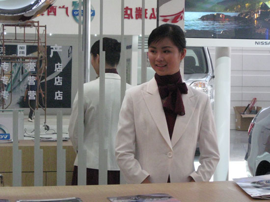 編輯在東風(fēng)日產(chǎn)展位看到該品牌的多款車型系列都已經(jīng)擺好POSS,其中包括日前剛剛上市東風(fēng)日產(chǎn)奇駿。現(xiàn)場漂亮的前臺接待小姐正在緊張的排練中。