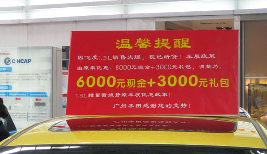 (廣西汽車(chē)網(wǎng) 訊)從前幾個(gè)月來(lái)銷(xiāo)量情況來(lái)看,新飛度無(wú)疑是兩廂車(chē)市的銷(xiāo)量冠軍,自今年7月2日正式上市以來(lái)一直倍受歡迎,價(jià)格一直堅(jiān)挺。南寧車(chē)展剛剛落下帷幕,參展的各個(gè)品牌各有收獲,廣州本田自5日開(kāi)始就一直持續(xù)熱銷(xiāo),僅僅3天時(shí)間訂單就已經(jīng)達(dá)到76個(gè),主要集中在雅閣(參數(shù)配置 圖庫(kù))和新飛度(參數(shù)配置 圖庫(kù))兩個(gè)系列。而由于新飛度的火爆銷(xiāo)售場(chǎng)面,致使新飛度一度斷貨,優(yōu)惠幅度也由原來(lái)的8000元現(xiàn)金+3000元禮包減少為6000元現(xiàn)金+3000元禮包。車(chē)展才僅僅過(guò)了3天,新飛度的優(yōu)惠就縮水2000元現(xiàn)金,這無(wú)疑讓一直拿捏不定的消費(fèi)者后悔莫及。
