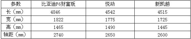三款車型尺寸對(duì)比: