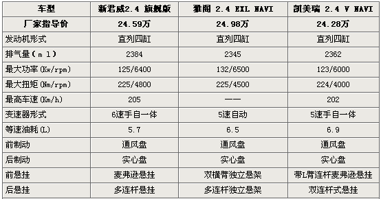 新一代君威作為上海通用別克雙品牌戰(zhàn)略的重要組成部分,已于12月1日在深圳正式上市。新一代君威君威不僅外觀更加動感,而且內(nèi)飾也更加時尚。先期上市的新一代君威四款車型搭載了2.0與2.4排量發(fā)動機,售價為17.99萬-24.59萬。而在此中級車細分市場中,新雅閣和凱美瑞均占據(jù)著一定的市場份額。下面通過對三款價格相近車型進行詳實解析,以便為您的購車提供一定的參考。