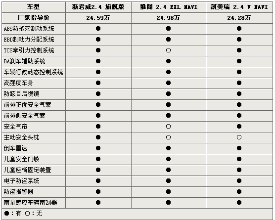 新君威、新雅閣以及凱美瑞作為中級車,其在安全性能方面可謂是下足了功夫,前排安全氣囊、側(cè)安全氣囊及電子穩(wěn)定程序等均成為三款車的標準配置。而新君威配備的主動式頭枕,均較新雅閣和凱美瑞提高了主動安全性能。此外,新君威和凱美瑞配備的TCS牽引力控制系統(tǒng)和安全氣簾,較新雅閣在一定程度上提高了自身安全性